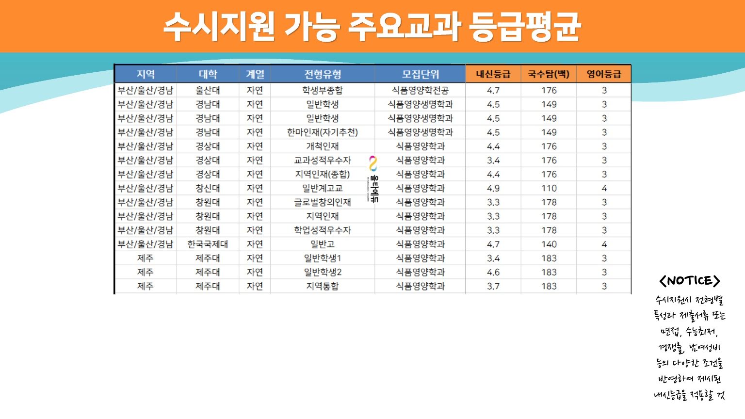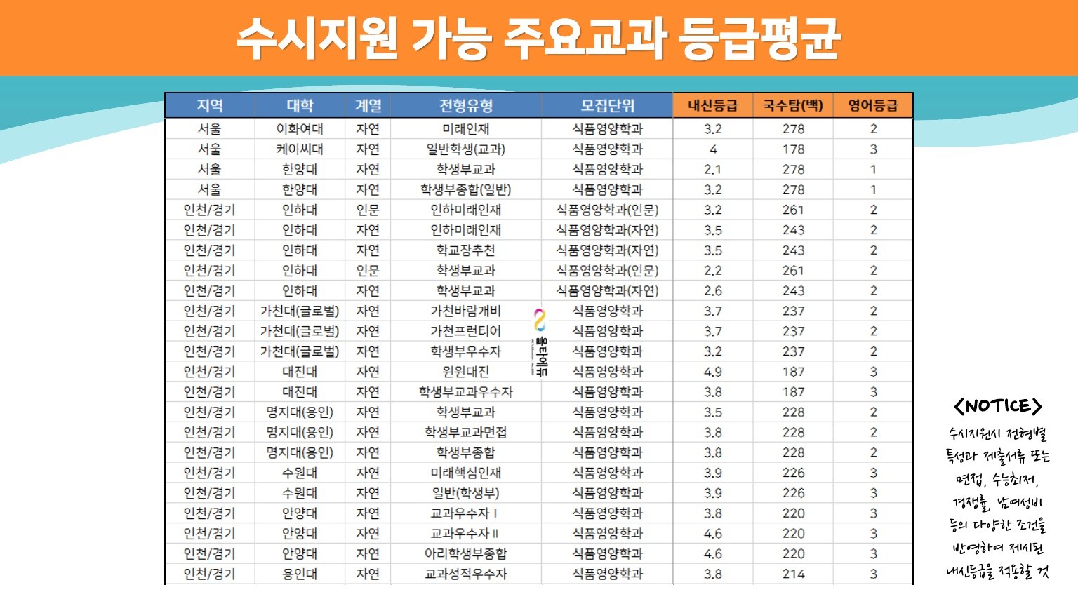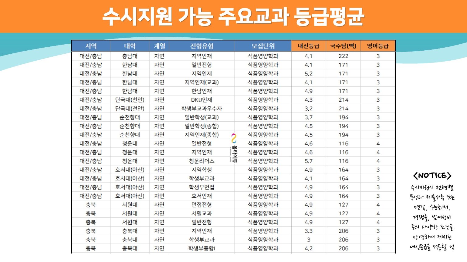 <대학에 따라 학과명, 전형명에 변경이 있을 수 있으며 해당자료는 참고용으로만 활용하시길 바랍니다>